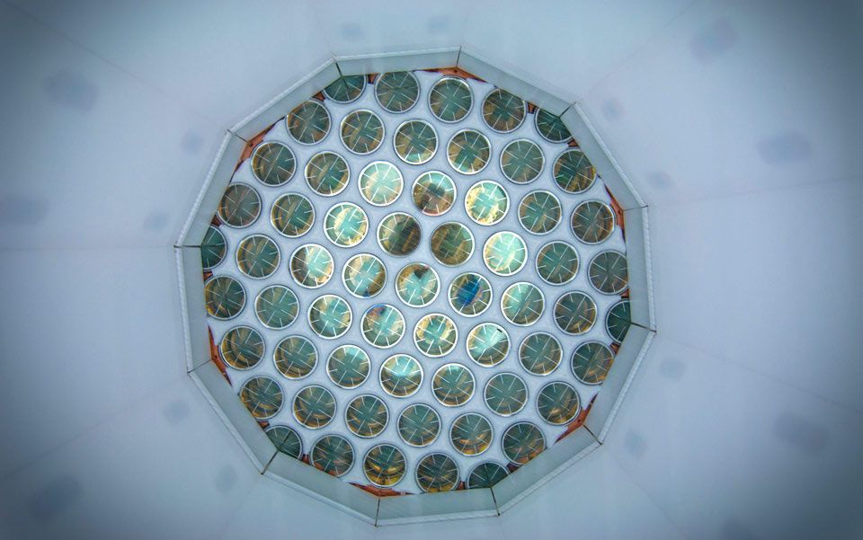 Vid snizu vverh iznutri Bolèšogo podzemnogo ksenonovogo èksperimenta s tëmnoj materiej