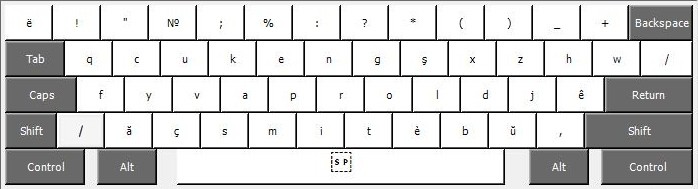 Aa Ăă Bb Cc Çç Dd Eeë Èè Êê Ff Gg Hh Ii Jj Kk Ll Mm Nn Oo Pp Rr Ss Şş Tt Uu Ŭŭ Vv Xx Yy Zz